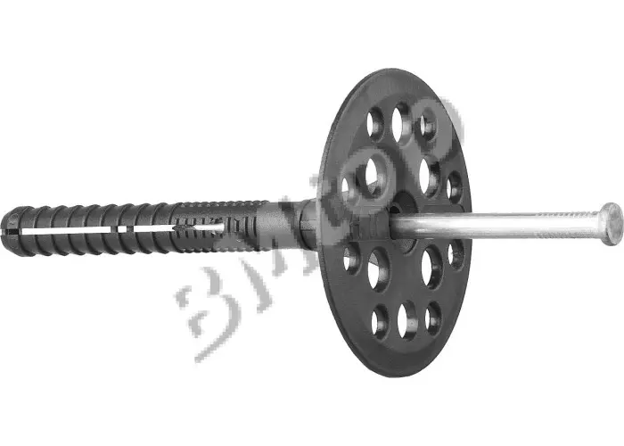 Дюбель для термоизоляции (фасадный дюбель, «грибок») применяется для крепления теплоизоляционных плит (пенополистирол EPS/XPS, минеральная вата) к стенам и фасадам в системах наружного утепления СФТК. Обеспечивает удержание утеплителя без смещения и предотвращает образование мостиков холода в точках крепления.