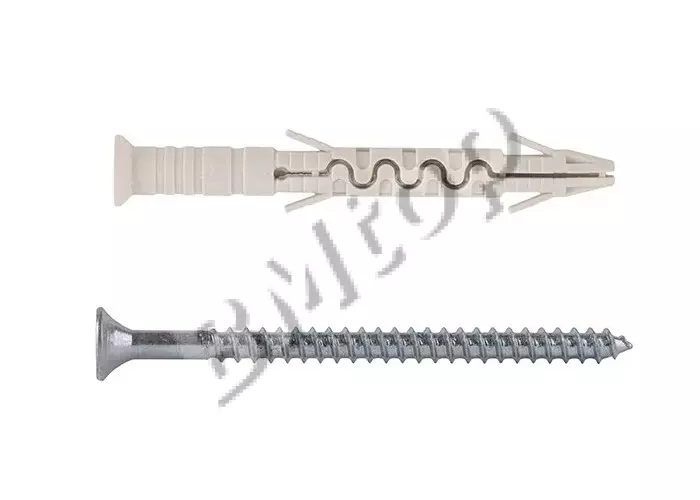 Дюбель KPR — нейлоновый распорный дюбель серии «стандарт» — применяется для крепления в бетоне, полнотелом кирпиче и газосиликатных блоках при монтаже оборудования и элементов интерьера. Используется совместно с универсальными шурупами и подходит для широкого круга бытовых и профессиональных монтажных задач.
